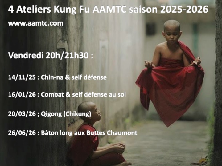 vendredis (20h/21h30) saison 2025/2026 : 4 ateliers d’arts martiaux chinois.