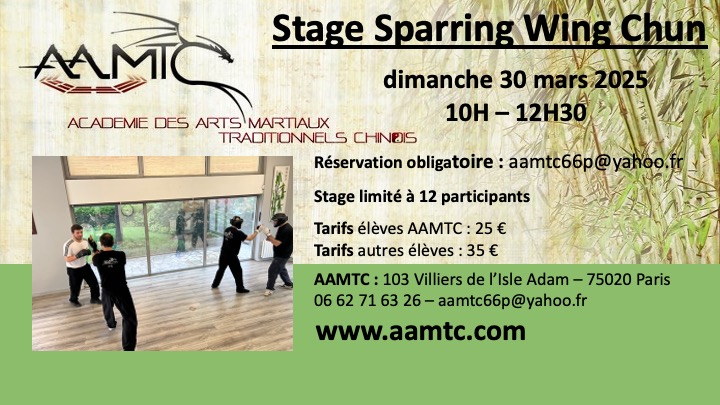 Dimanche 8 février 2026 10h-12h30 : Stage Sparring Wing Chun (réservation par mail obligatoire – limité à 12 personnes)