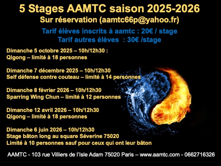 Tarif stage élèves inscrits à AAMTC : 20 € / stage